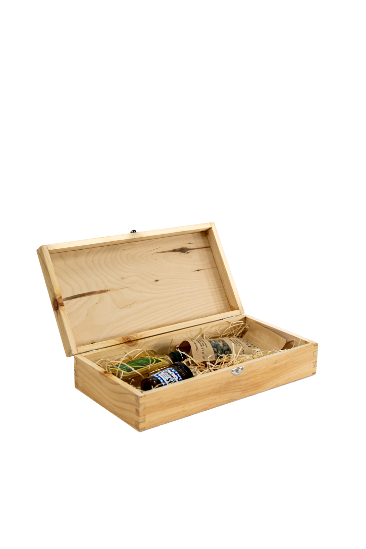 | Material | Korpus 10 mm massives Kiefernholz, Boden und Deckel 4 mm laminiertes sibirisches Birkenholz. |