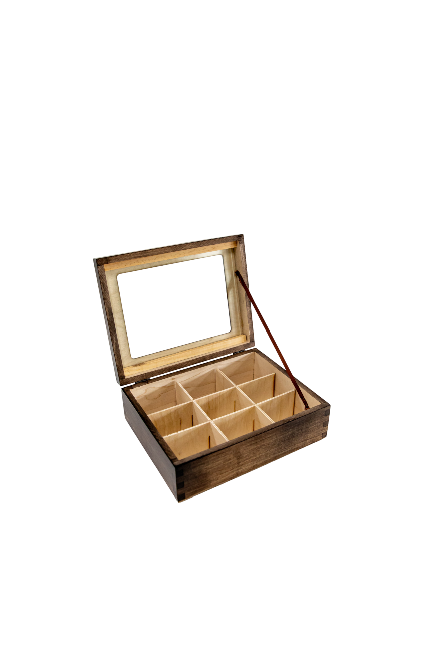 | Material | Korpus 10 mm massives Kiefernholz, Boden und Deckel 4 mm laminiertes sibirisches Birkenholz. |