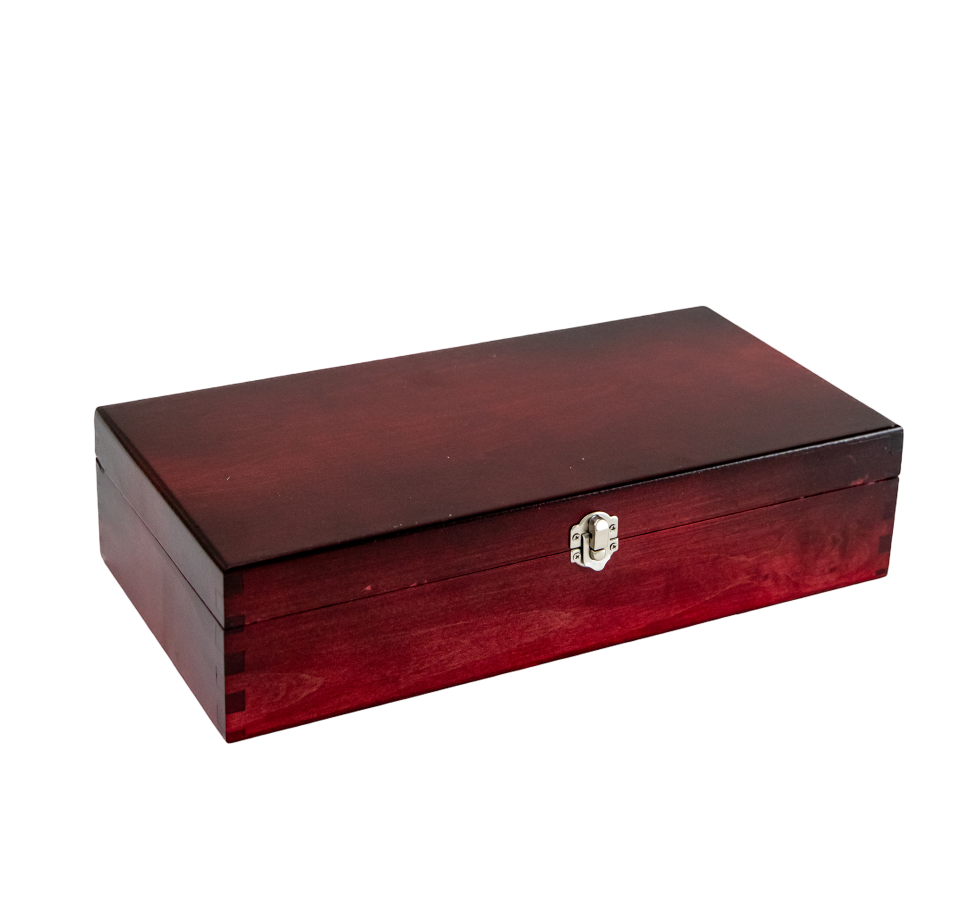 – premium lakirana, ručno bajcana kutija za 2 butelje, vino rosso boja